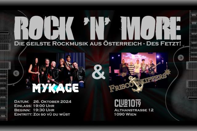 Die sechsköpfige Melodic-Rock-Band Mykage rund um das Gesangs-Power-Duo Mike & Babsy beeindruckt mit einer kraftvollen Rhythmus-Sektion, rockigen Gitarren, melodiösen Piano- und Keyboardsounds und verträumen Violinenklängen. Die Frisco Skippers spielen Rock 'n' Country über Liebe, Durchhalten, Heimweh und Gras rauchenden Deputies.